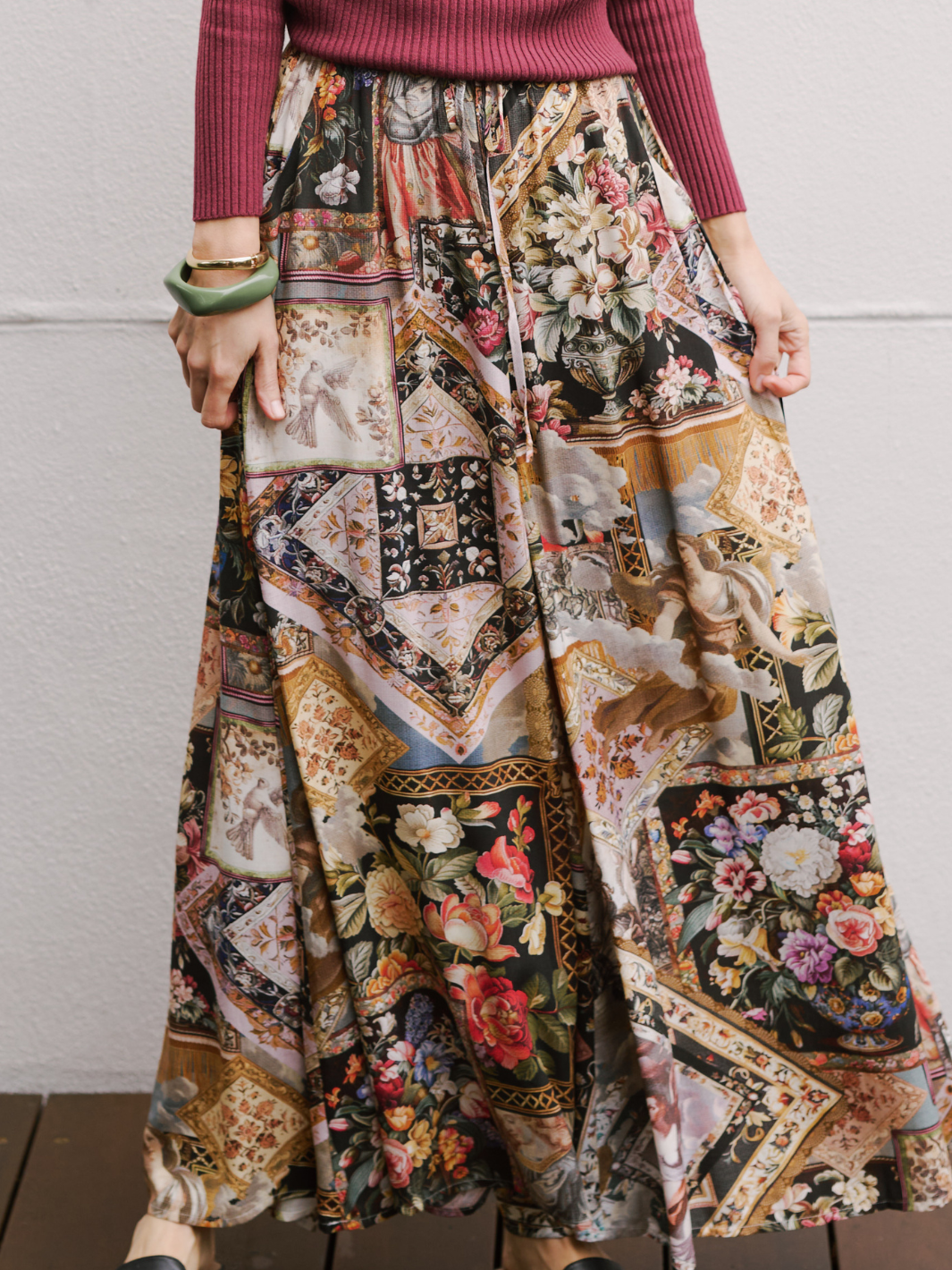 Introducing the LOUVRE PANT – the perfect addition to your wardrobe! Featuring a trans-seasonal print, these wide leg pants are both stylish and comfortable. With an elasticated waist and drawstring, and side pockets for added convenience, these pants are versatile for any occasion.